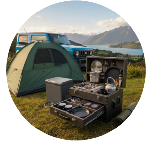 Customise your adventure. Add a camping kit ($10/day), mountain bikes ($20/day), e-bikes ($50/day), Starlink Mini satellite internet ($15/day)